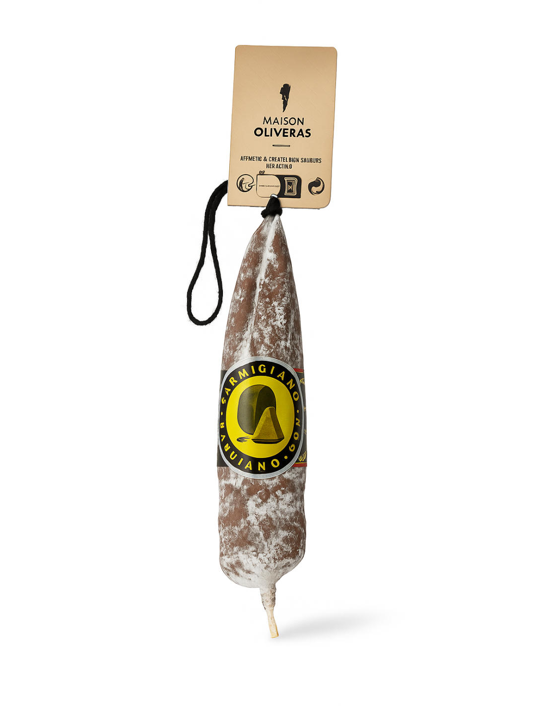 Saucisson Saucisson de payes 200 g 1163 Saucisson de payes Saucisson traditionnel du pays Catalan (Olot) Découvrez notre saucisson naturel "Payes", fabriqué à partir de viande de porc de qualité supérieure et enveloppé dans un boyau naturel. Avec son poids de 200g, c'est l'en-cas idéal pour une pause gourmande. Savourez sa saveur authentique et sa texture fondante à tout moment de la journée... Ajouter au panier